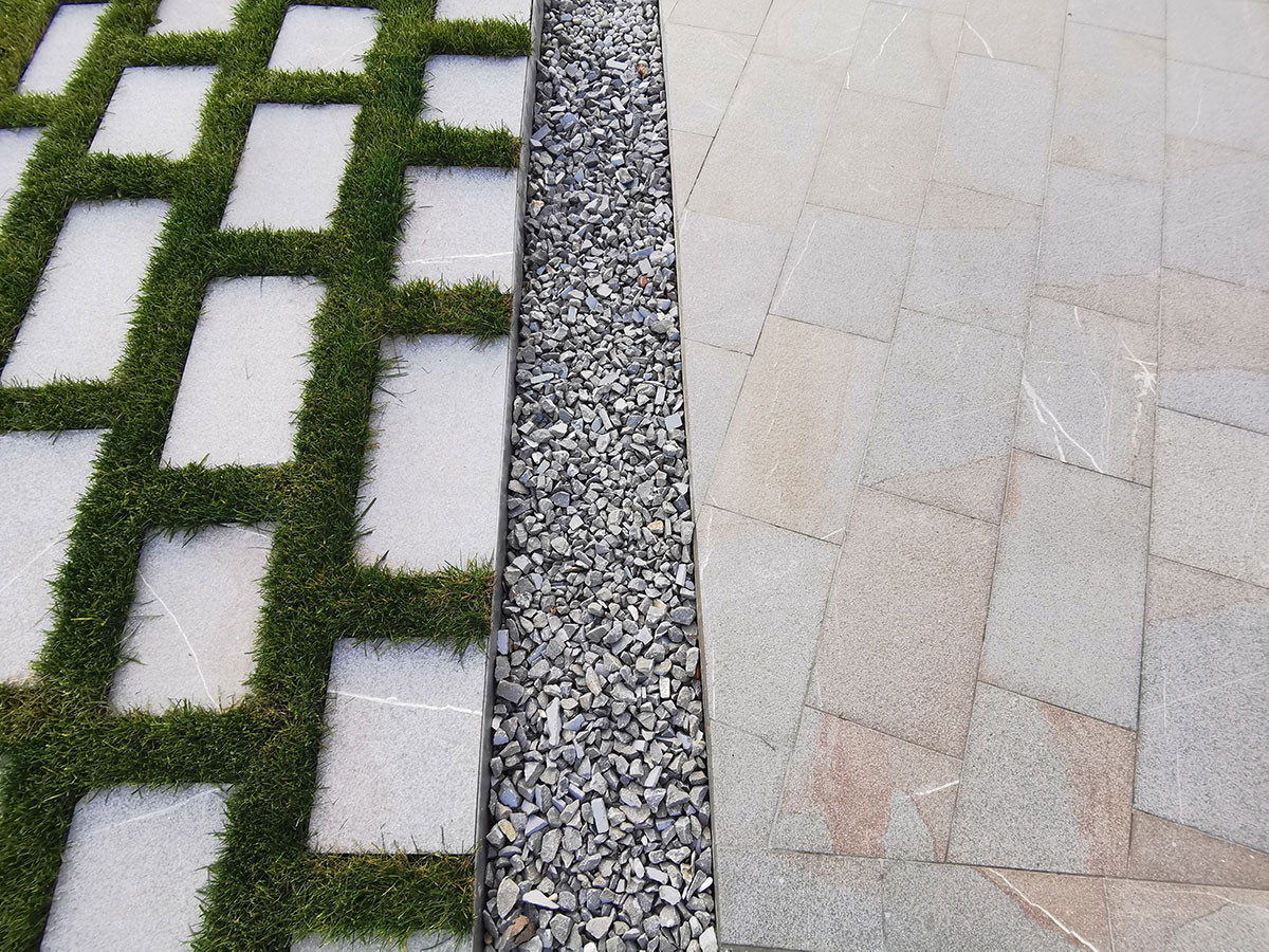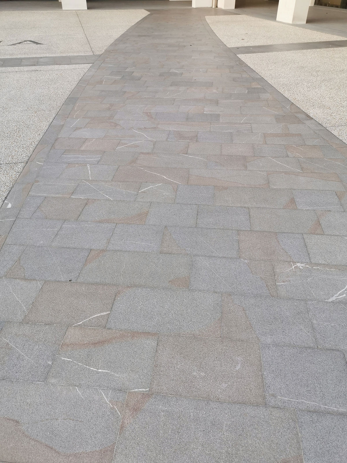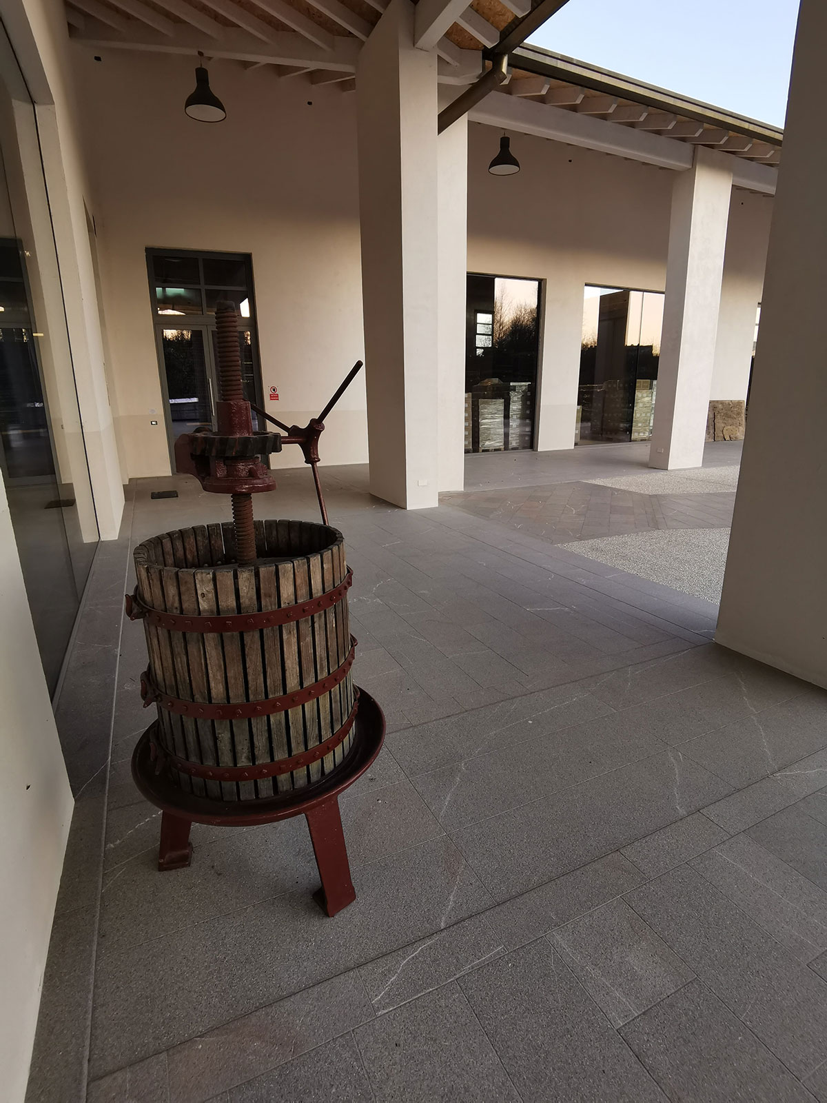 La Piasentina in questo progetto dimostra la sua duttilità nell’impiego. Utilizzata per i pavimenti dei sottoportici, per decore l’ingresso azienda, per le copertine dei muri e per il calcestruzzo in lavato con graniglia macinata dell’ingresso mezzi. La ditta CUDICIO interessata nel riciclo dello scarto e a nuovi impieghi decorativi nel riusare la Piasentina anche per pavimentazioni tecniche.