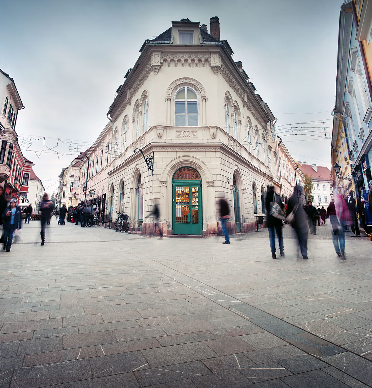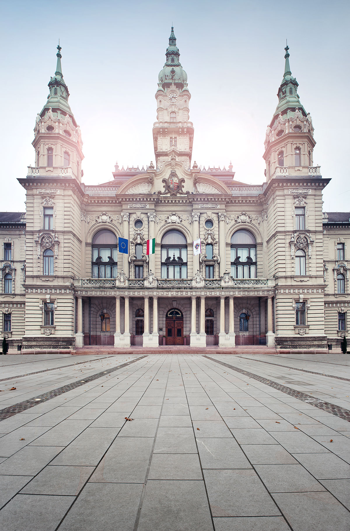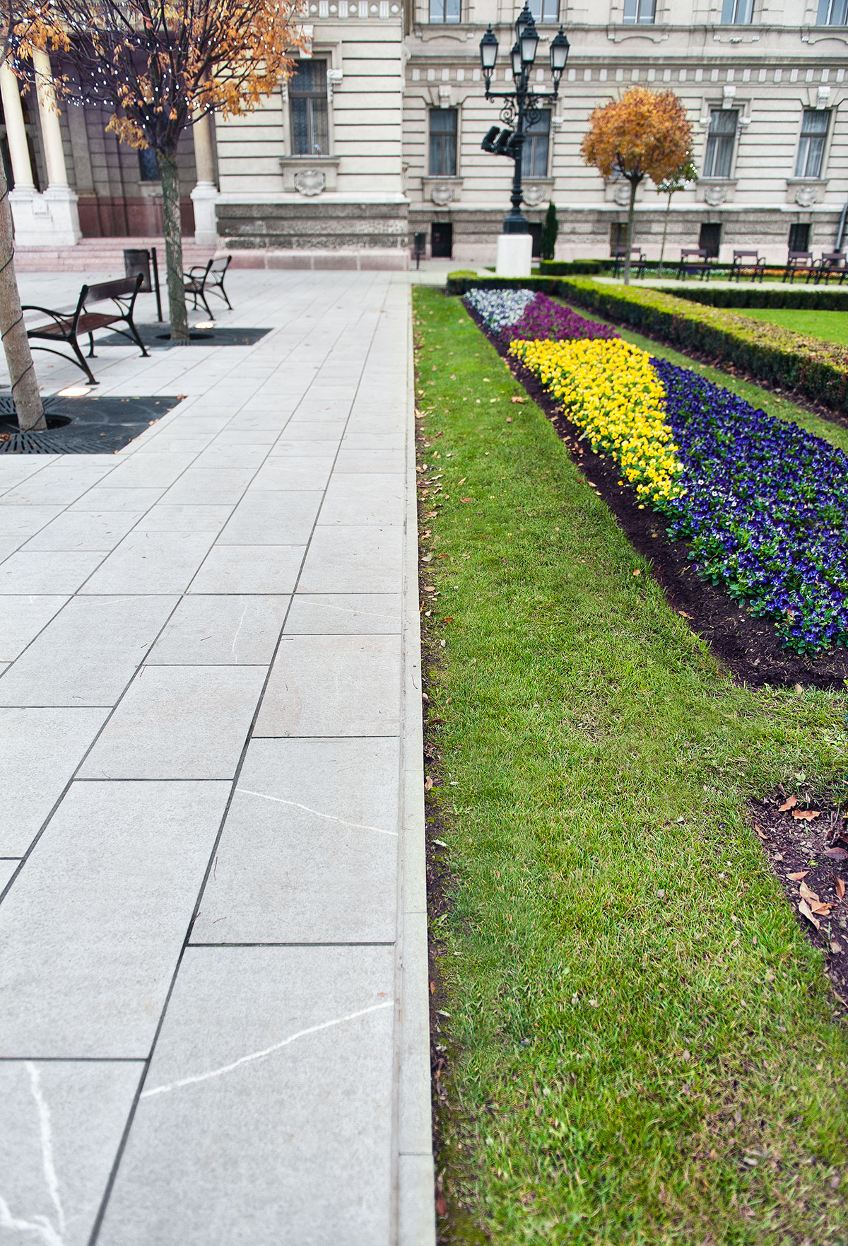 La Piasentina utilizzata anche per opere pubbliche di pregio come questa piazza pubblica fronte Municipio a Győr. Progetto rilevante per la grande tecnicità del materiale nel sopportare alti carichi di stress sia veicolare che pedonale, senza rinunciare al grande impatto decorativo che la pietra suscita.